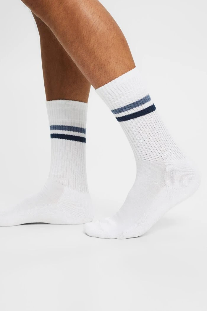 Diese Socken interpretieren den sportlichen Look neu und punkten mit einer klassischen Rippstruktur am Schaft, die durch farbige Streifen veredelt wird.