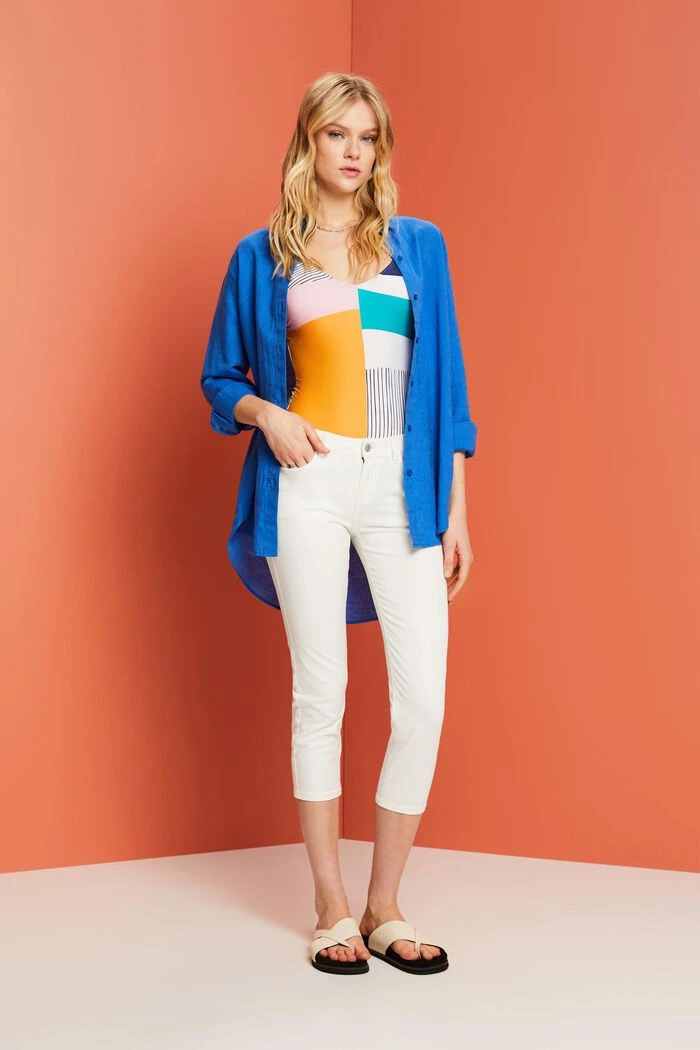 Zeig deine Sommerbeine mit dieser Caprihose! Diese stylische und bequeme Hose aus Baumwolltwill mit Stretchkomfort sorgt für den ganzen Tag über für höchsten Tragekomfort.