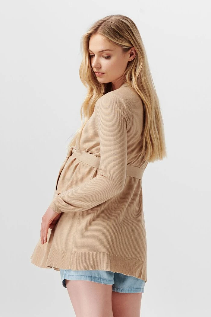 Dieser Cardigan aus Strukturstrick mit Bindegürtel ist ein wunderbarer Begleiter während der Schwangerschaft und darüber hinaus.