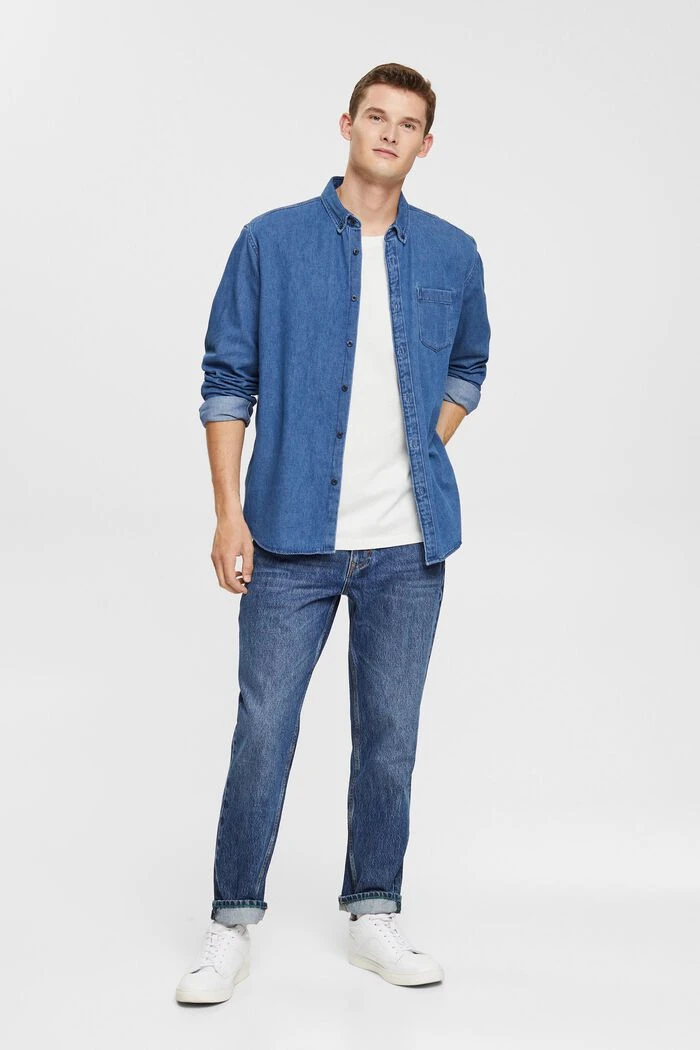 Das geknöpfte Denim-Shirt garantiert einen modischen Auftritt.