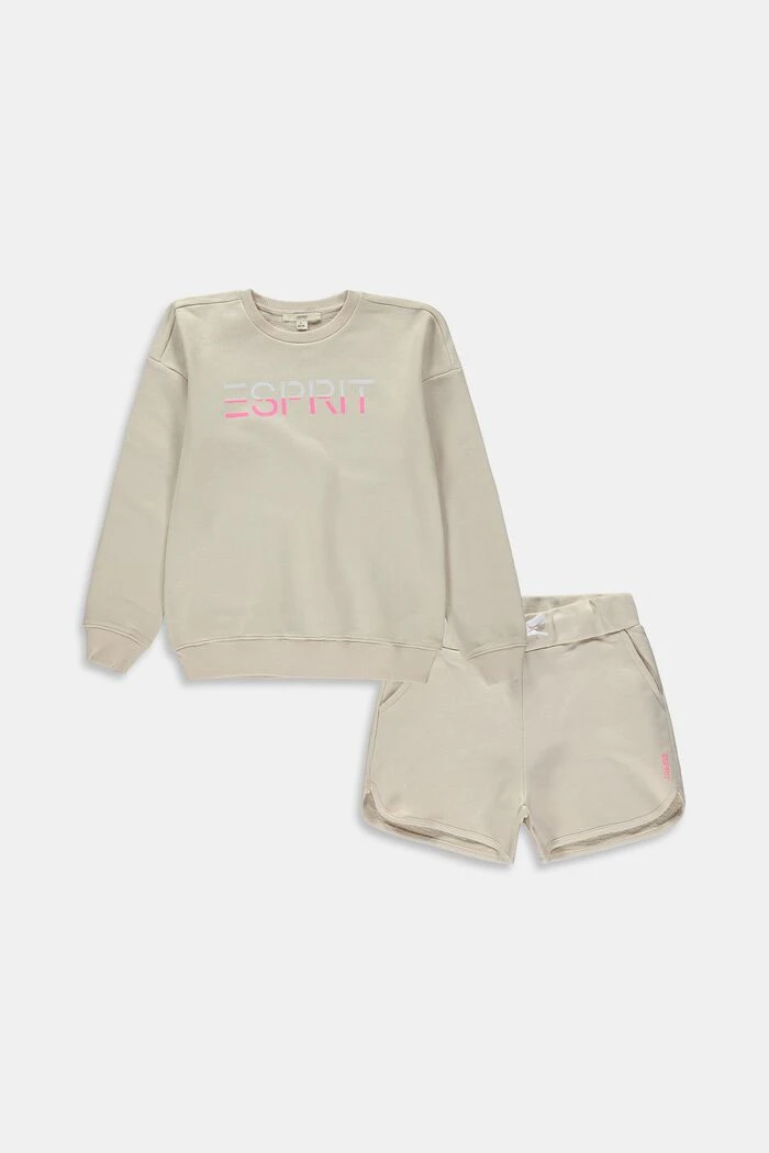 Cool und comfy: Die Kombi aus einem Sweatshirt mit coolem Logo-Print und passenden Sweatshorts lässt Kinderherzen höher schlagen.