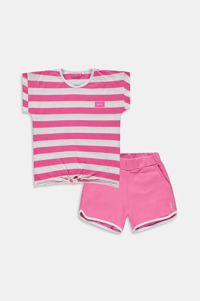 Dieses 2er-Set aus weicher Baumwolle besteht aus einem gestreiften T-Shirt mit Knotendetail und einer bequemen Shorts. Ein komplettes Outfit für entspannte Sommertage.