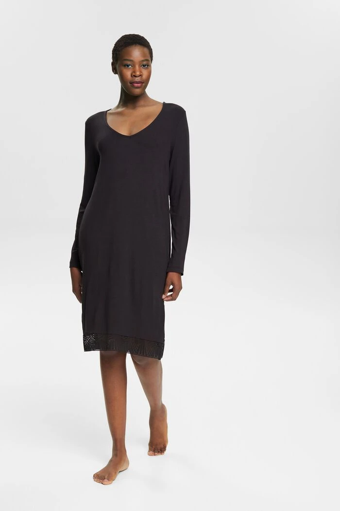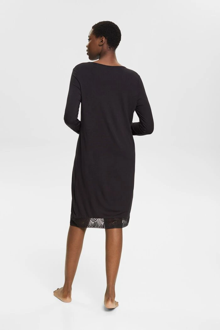 Für gemütliche Nächte zu Hause: Langärmeliges Nachthemd mit Spitze aus LENZING™ ECOVERO™-Viskose.