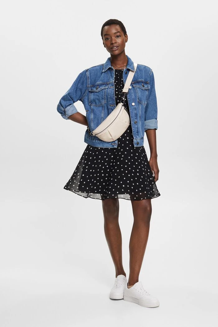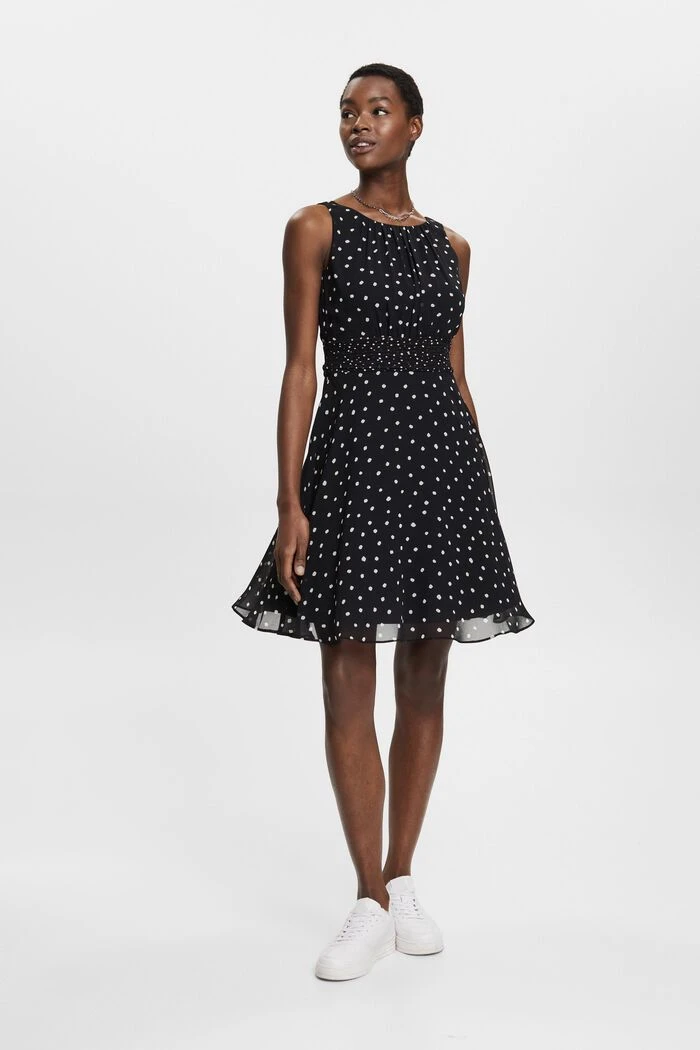 Femininer-Eyecatcher für viele Gelegenheiten und – auf jeden Fall – für ein gutes Gefühl: Chiffon-Kleid aus recyceltem Material mit Allover-Print!