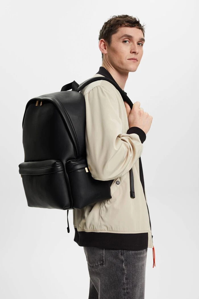 Sportlichkeit trifft auf Eleganz: Dieser Rucksack aus Fake-Leather ist der perfekte Reisebegleiter.